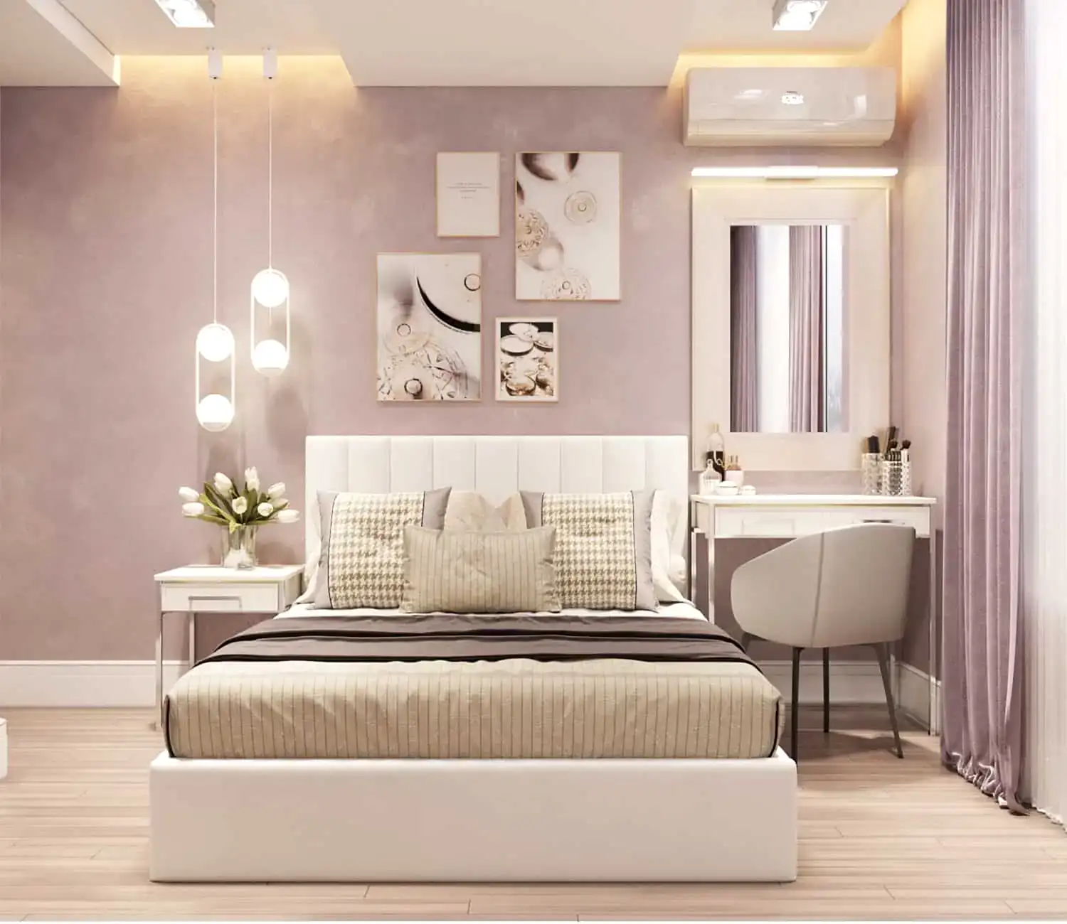 В спальне на Pin-Up был сделан короб, в котором скрывался ригель и оригинальная подсветка.