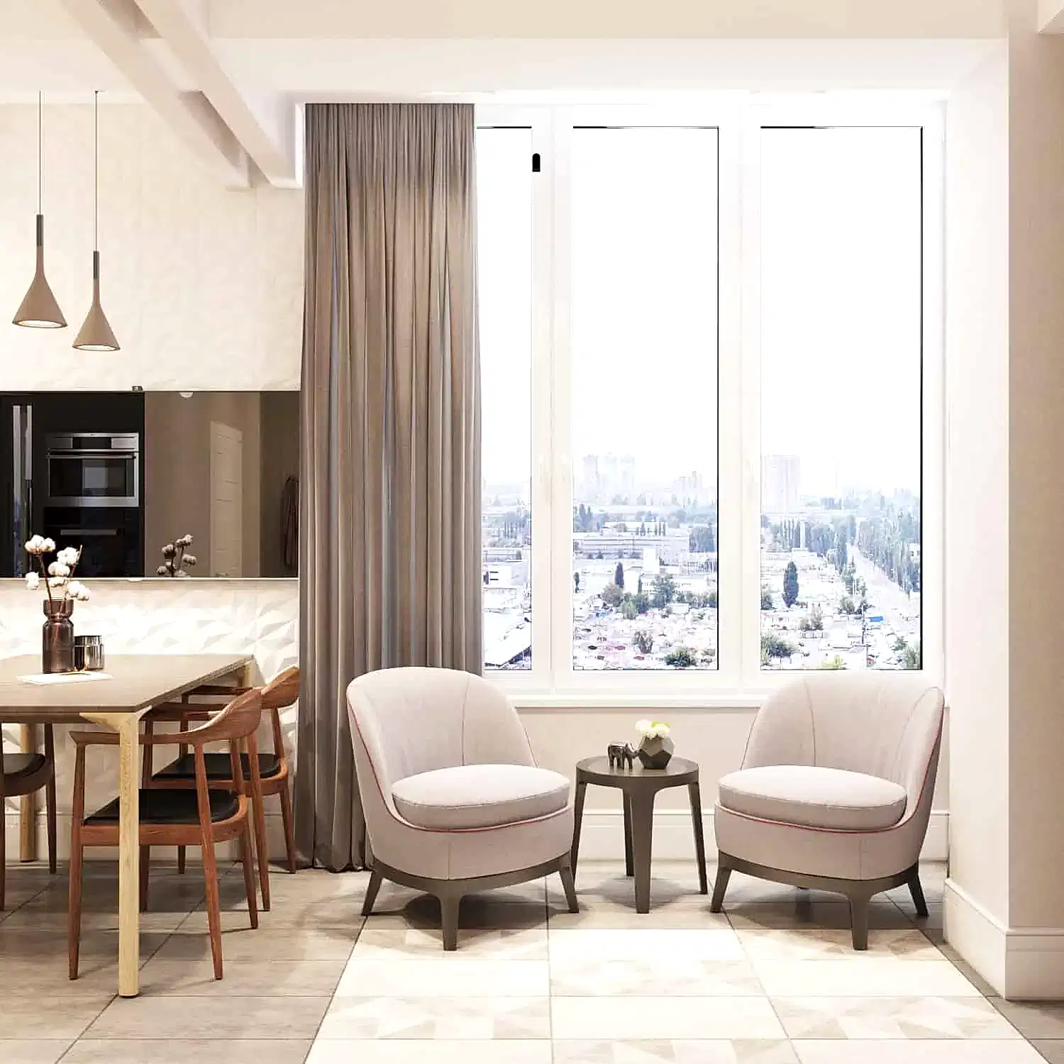 Просторная кухня - гостиная 30 кв.м. Здесь также необходимо было учесть газовый котел, Pin-Up пространство для хранения кухонных предметов: обеденный стол, диван и дополнительно 2 кресла🪑.